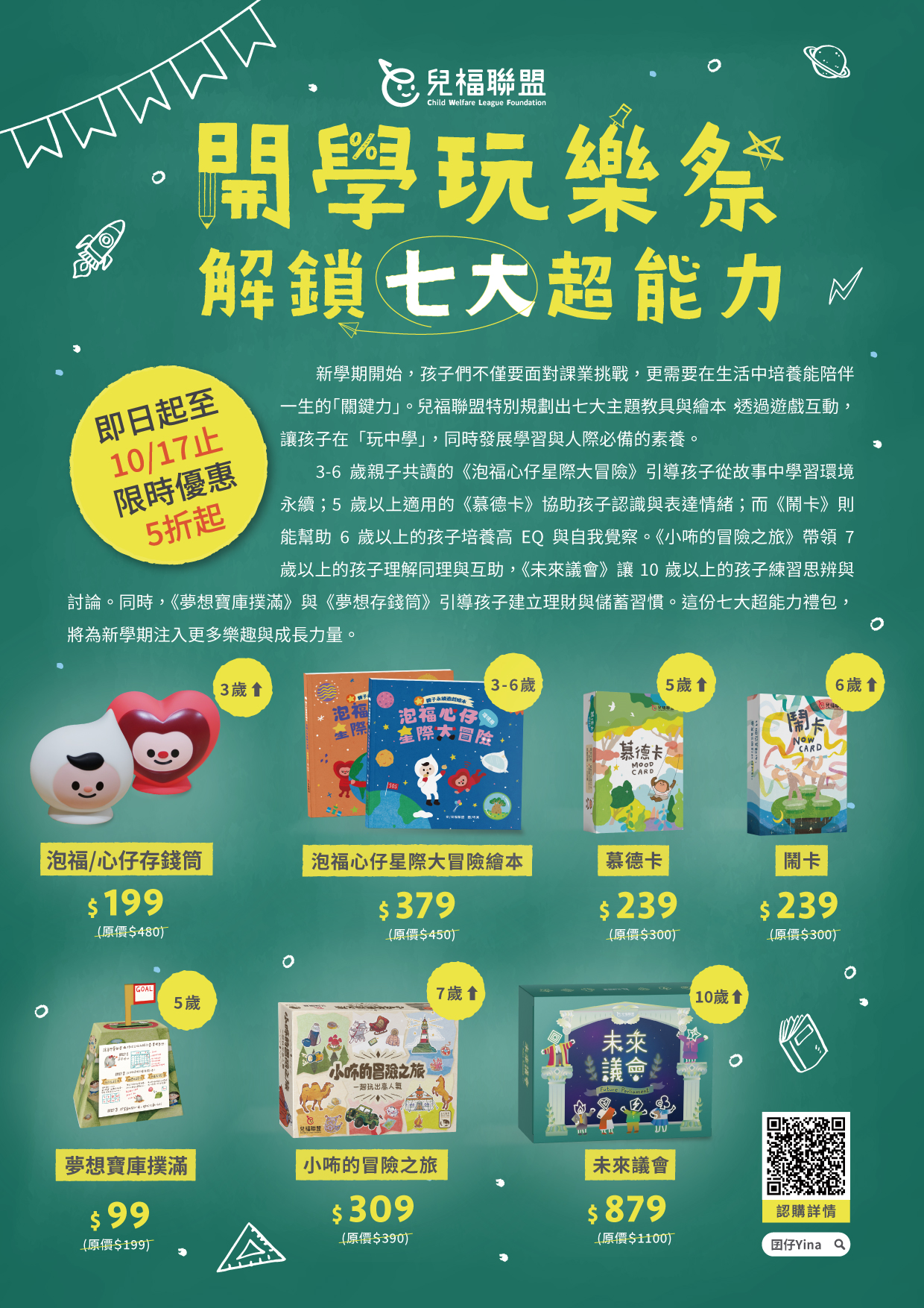 兒童福利聯盟基金會推出「開學玩樂祭·解鎖七大超能力」成長禮包